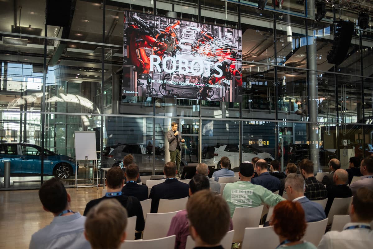 Mit dabei waren führende Unternehmen und Köpfe wie Wandelbots, NVIDIA, Siemens, TRUMPF, Vathos, Evasive Robotics, Syncrobot, Robominds, Fraunhofer IWU und TU Dresden, die ihre neuesten Technologien und praxisnahen Use Cases präsentierten. Nach den Showcases konnten die Besucherinnen und Besucher die gesamte Ausstellung erkunden und Robotik live erleben, unter anderem mit eindrucksvollen Demonstratoren von All About Accuracy, RTT Zittau, significant., Syncrobot, TECHMAN Robot, der TU Dresden und Wandelbots.