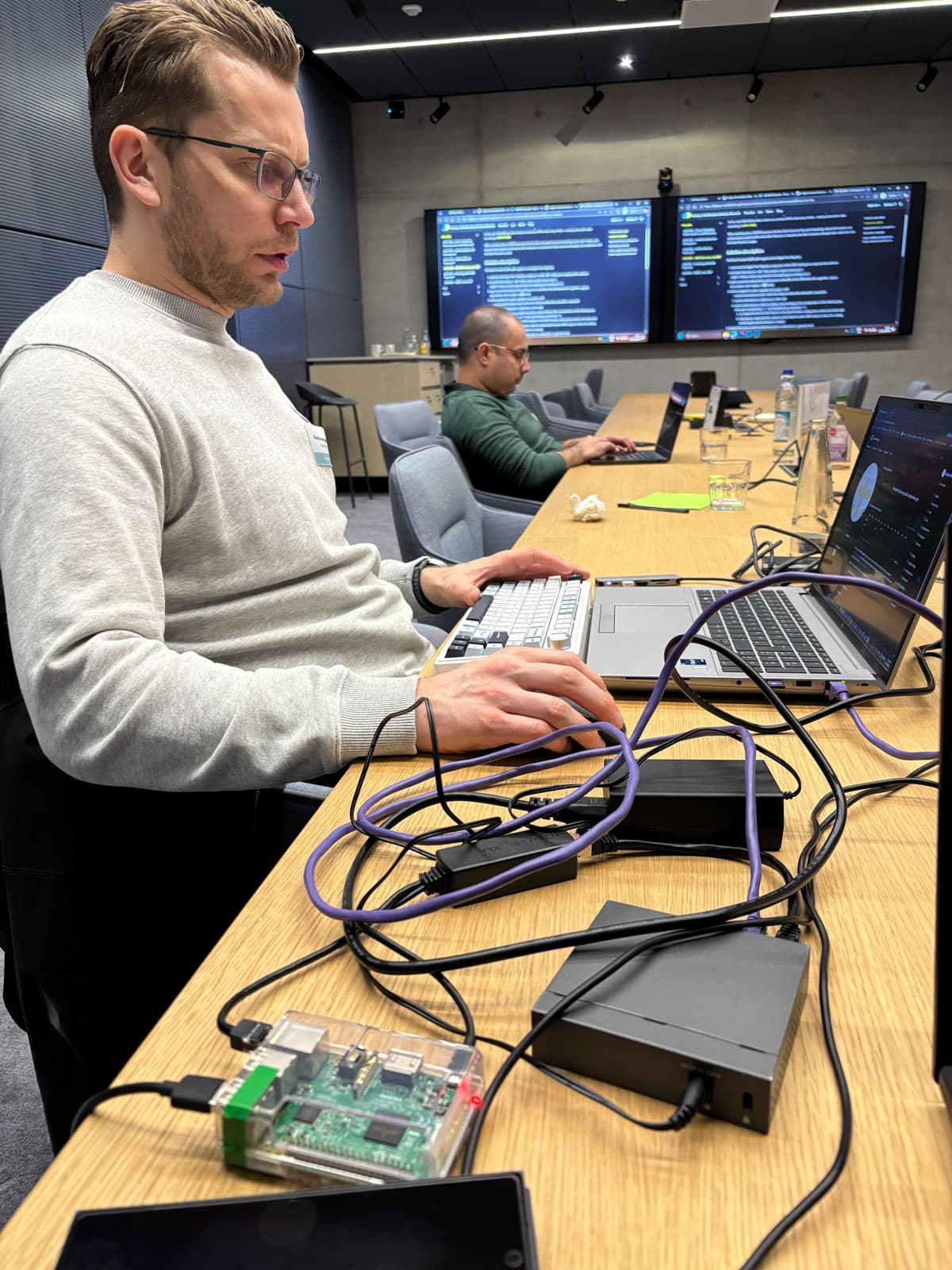 Mit klarer Hands-on-Mentalität hieß es: analysieren, vernetzen, prototypisieren – und das direkt an realer Infrastruktur. Unser mobiles Pop-up-Testbed war vor Ort im Einsatz und machte Manufacturing-X praktisch erlebbar: Datenanbindung, Schnittstellen und Interoperabilität konnten unmittelbar ausprobiert werden. Unterstützt durch unser Partnernetzwerk und das Manufacturing-X-Ökosystem entstanden so in kürzester Zeit greifbare Lösungen, die zeigen, wie souveräner Datenaustausch in der Fertigung Realität wird.