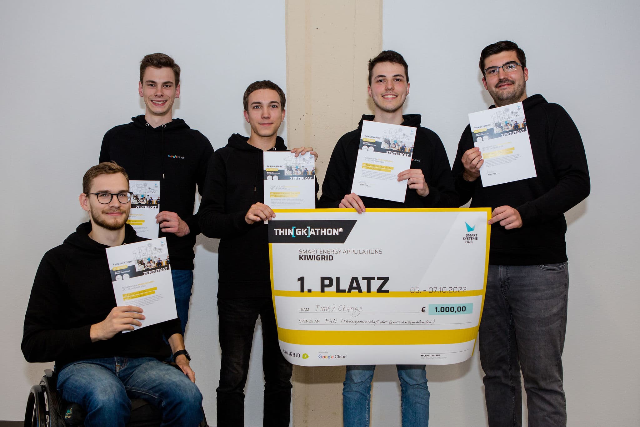 Sieger des Thin[gk]athon wurde das Team „Time2Change“ mit einer cleveren Integration der KiwiOS-Plattform in den Google-Kalender. Den zweiten Platz belegte Team „ENERLY“ – mit einer App, die Energiedaten in einfach verständlicher Form präsentiert und durch Gamification Anreize zum Energiesparen setzt. Platz drei ging an Team „ENGAGE“ für eine Anwendung, die Nutzer*innen mittels Leuchtdioden intuitiv zu verstehen gibt, wann ein günstiger Zeitpunkt ist, um Haushaltsgeräte zu nutzen, die besonders viel Energie verbrauchen. Die Preisgelder spendeten die Gewinner-Teams jeweils an gemeinnützige Organisationen.