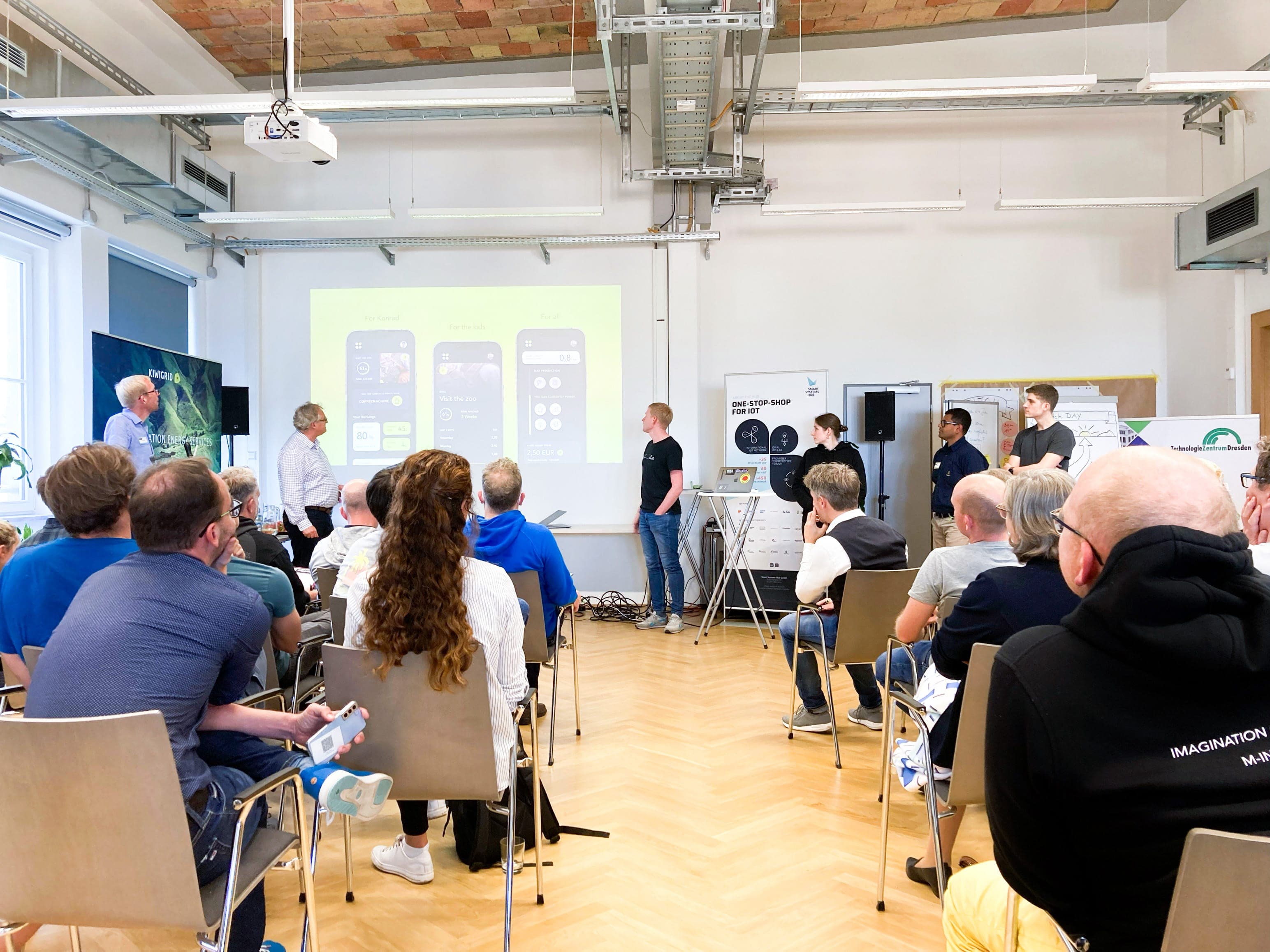 Mit dem „Thin[gk]athon“ hat die Dresdner Innovationsschmiede des Smart-Systems-Hub ein passendes Format geschaffen, das Entwickler*innen die Gelegenheit gab, die vielfältigen Möglichkeiten der Plattform zu nutzen und in kürzester Zeit eigene Energiesparanwendungen zu entwickeln. Von Mittwoch bis Freitag hatten die vier branchen- und unternehmensübergreifenden Teams dafür Zeit und wurden dabei von Coaches und Expert*innen unterstützt. In nur drei Tagen entstanden auf diesem Weg voll funktionale Prototypen für intelligente Energieanwendungen auf Basis der KiwiOS-Plattform mit ihren Schnittstellen.