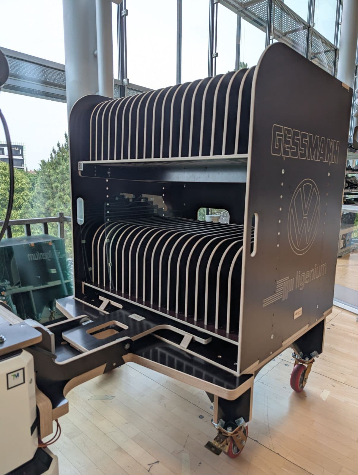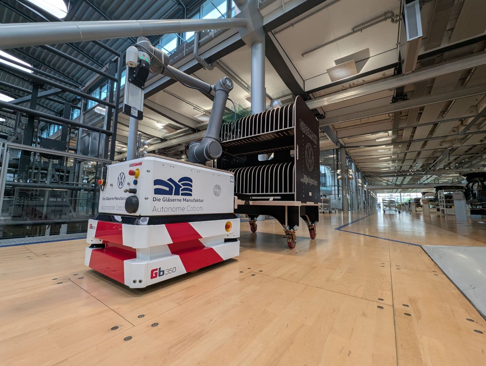 An der Umsetzung dieses Konzepts wirkten mehrere Technologiepartner mit: Gessmann als Lieferant für fahrerlose Transportsysteme, Techman als Hersteller für Robotik, Schmalz als Hersteller für Vakuumtechnik sowie Ligenium als Entwickler und Lieferant eines nachhaltigen, automatisierungsfähigen Holzladungsträgers. Jeder Partner brachte seine spezifische Expertise ein – das Gesamtkonzept und die Systemarchitektur lagen dabei klar bei Volkswagen.